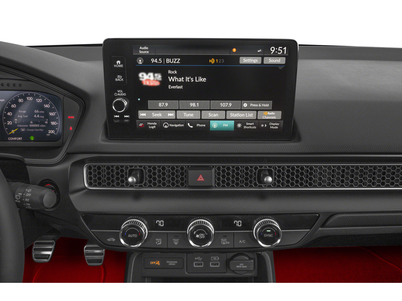 - Radio: Bose Premium Sound System w/SiriusXM -inc: 12 speakers w/subwoofer, 9" color touchscreen, Honda Satellite-Linked Navigation System w/voice recognition and Honda Real-Time Traffic, HondaLink, wireless Apple CarPlay and Android Auto compatibility, HD Radio, 2.5-amp USB-A smartphone and audio interface port in front console, Bluetooth® HandsFreeLink and streaming audio, Radio Data System (RDS), Speed-Sensitive Volume Control (SVC) and Wi-Fi hotspot capability, Wi-Fi and Wi-Fi Direct are registered trademarks of Wi-Fi Alliance, Requires AT&T data plan, SiriusXM requires a subscription after any trial period, If you decide to continue your SiriusXM service at the end of your trial subscription, the plan you choose will automatically renew and bill at then-current rates until you call SiriusXM at 1-866-635-2349 to cancel, See our customer agreement for complete terms at www.siriusxm.com, Fees and programming subject to change, Available in the 48 contiguous United States and D.C, SiriusXM and all related marks and logos are trademarks of SiriusXM Radio Inc