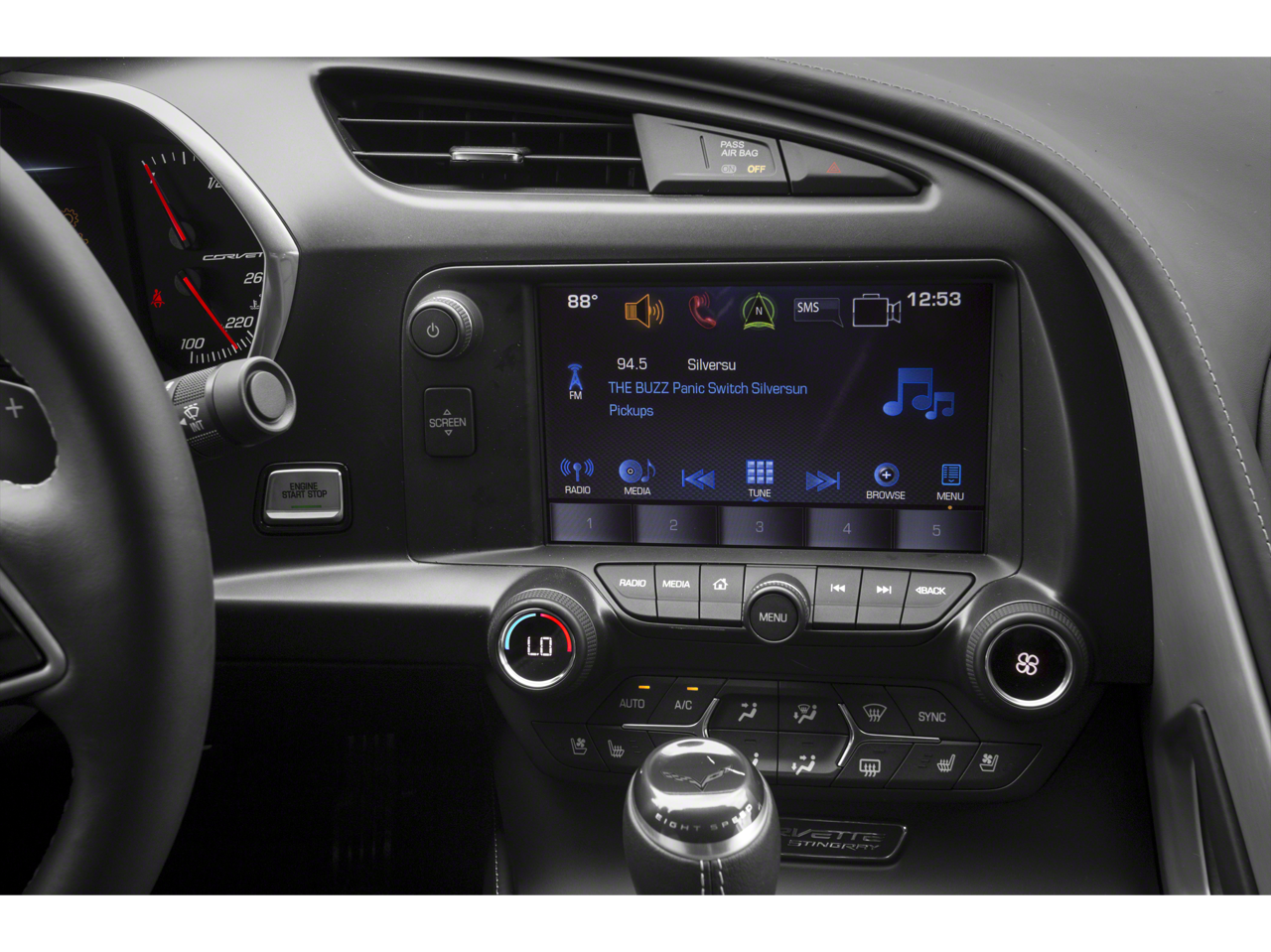 Inside, the Corvette Stingray Z51 1LT pampers you with a premium Bose audio system, dual-zone automatic climate control, and a host of advanced technology features. The Mulan perforated leather seating surfaces and power-adjustable seats ensure maximum comfort, while the sport steering wheel and paddle shifters put the joy of performance driving at your fingertips.