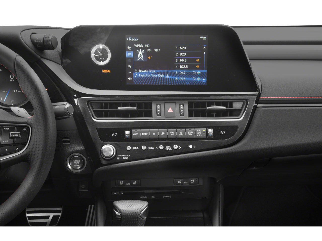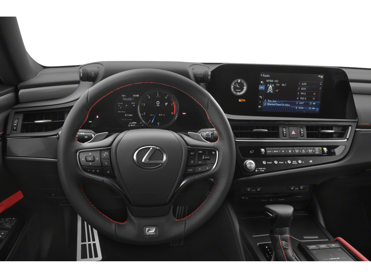 • Radio: Lexus Multimedia System -inc: 8.0" touchscreen color display, Apple CarPlay integration, Android Auto, Amazon Alexa compatibility, Remote Touch Interface (RTI) pad w/back button, 7" MID screen, 10 speakers Pioneer audio system, USB audio input connections, backup monitor, Bluetooth® hands free phone and automatic phonebook download capabilities, Bluetooth® streaming audio, CD player, HD Radio, SiriusXM 3-month platinum plan trial subscription), Lexus Enform Safety Connect (included for the first three years of ownership), Lexus Enform Service Connect (included for the first 10 years of ownership), Lexus Enform Wi-Fi, 4GB (three-month trial is included), Lexus Enform Remote w/Amazon Alexa and Google Assistant compatibility (included for the first three years of ownership) and Lexus mobile app services (Lexus Enform Remote, Lexus Drivers and more)