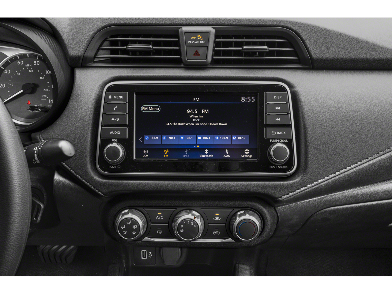 • Radio: AM/FM Audio System -inc: RDS, MP3, aux-in, 7" color touchscreen display, Bluetooth® hands-free phone system, streaming audio via Bluetooth®, interface for iPod and other compatible devices, hands-free text messaging assistant, Siri Eyes Free/Google Assistant voice recognition, 4 speakers and 3 USB ports (2-charge only)