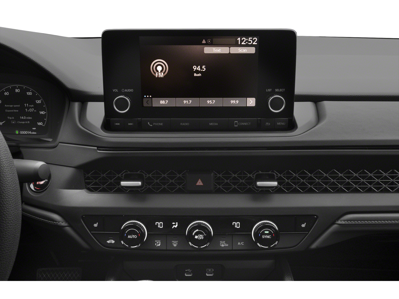 • Radio: 180-Watt AM/FM Audio System -inc: 8 speakers, 7" color touchscreen, wired Apple CarPlay and Android Auto compatibility, Bluetooth® streaming audio, 1 USB-C 3.0A smartphone/audio interface, 1 USB-C 3.0A charging port, wi-fi hotspot capability and HondaLink subscription services